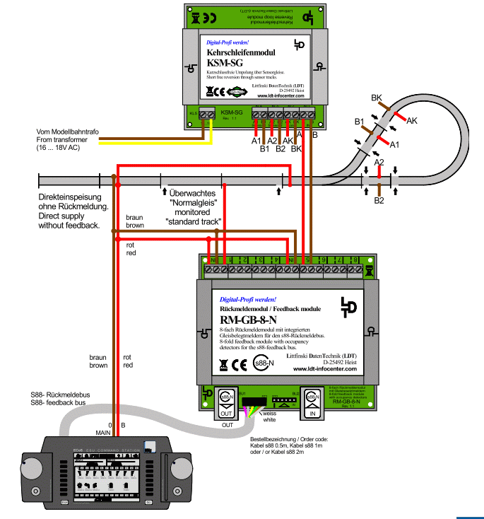 Die Gleistrennungen für das Blockstellenmodul sind nach dem Anschlußplan der Firma Littfinski DatenTechnik gemacht worden.