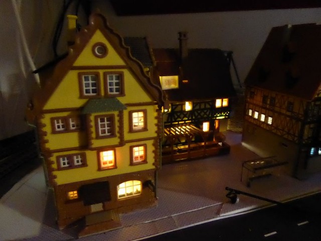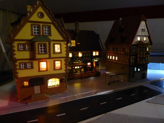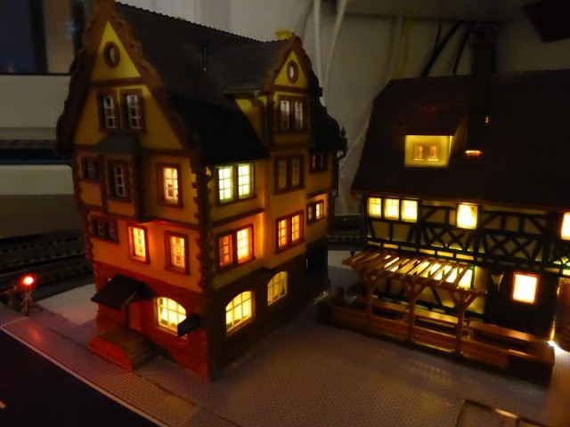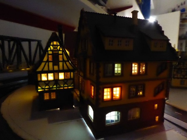 Die beiden daneben stehenden Modellhäuser werden in naher Zukunft für die Beleuchtung genauso umgebaut.