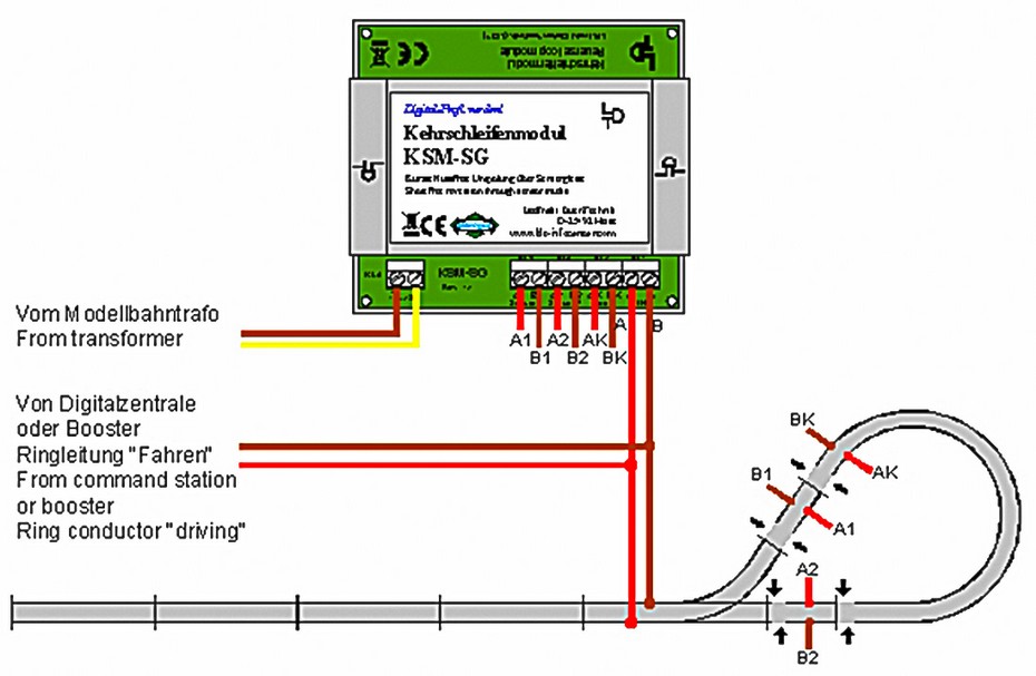 Die Gleistrennungen für das Kehrschleifenmodul sind nach dem Anschlußplan der Firma Littfinski DatenTechnik gemacht worden.