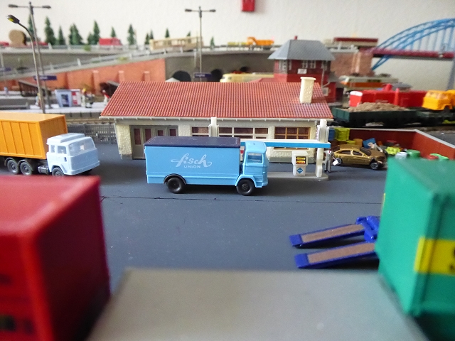 Die Spedition wurde im Vorfeld der Post und des Güterumschlag positioniert. Am Eingang ein bewegliches Tor mit einem Pförtner-Container, sowie Sitzplätze für einen kurzen Imbiß.